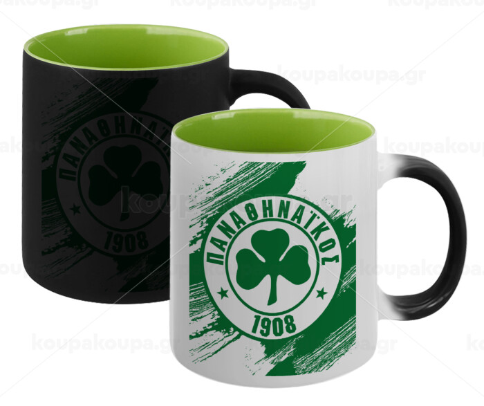 Π.Α.Ο., Κούπα Μαγική εσωτερικό πράσινο, κεραμική 330ml που αλλάζει χρώμα με το ζεστό ρόφημα
