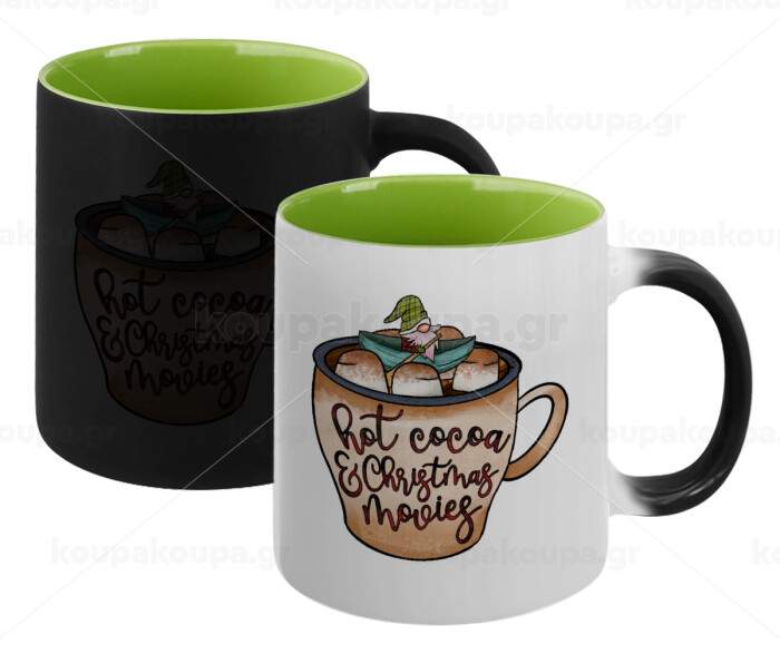 Hot Cocoa And Christmas Movies, Κούπα Μαγική εσωτερικό πράσινο, κεραμική 330ml που αλλάζει χρώμα με το ζεστό ρόφημα