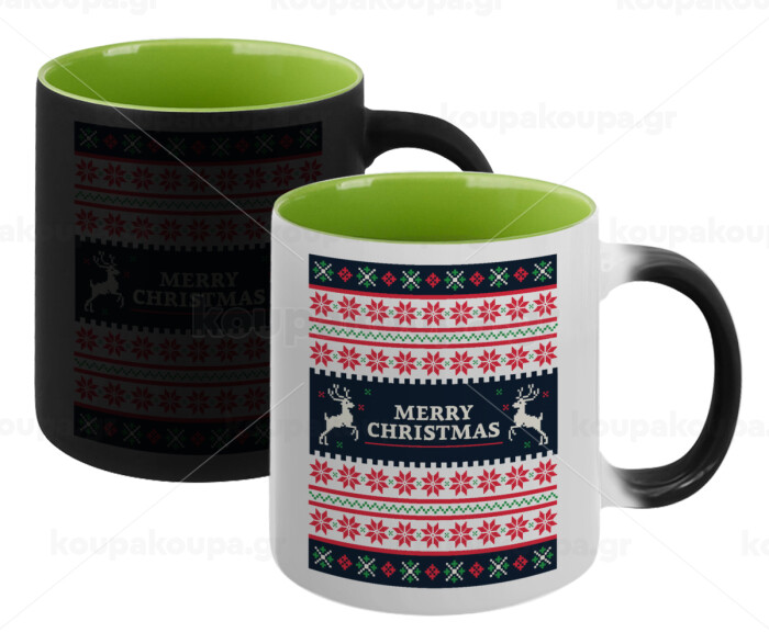 Merry Christmas Vintage, Κούπα Μαγική εσωτερικό πράσινο, κεραμική 330ml που αλλάζει χρώμα με το ζεστό ρόφημα