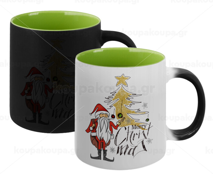 Santa Claus gold, Κούπα Μαγική εσωτερικό πράσινο, κεραμική 330ml που αλλάζει χρώμα με το ζεστό ρόφημα
