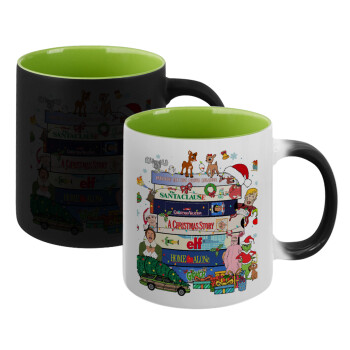 Xmas Classic movies, Κούπα Μαγική εσωτερικό πράσινο, κεραμική 330ml που αλλάζει χρώμα με το ζεστό ρόφημα