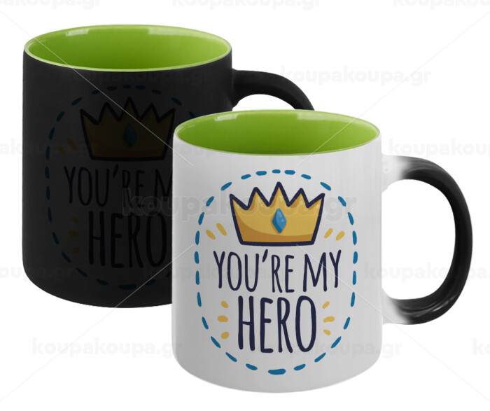 Dad, you are my hero!, Κούπα Μαγική εσωτερικό πράσινο, κεραμική 330ml που αλλάζει χρώμα με το ζεστό ρόφημα