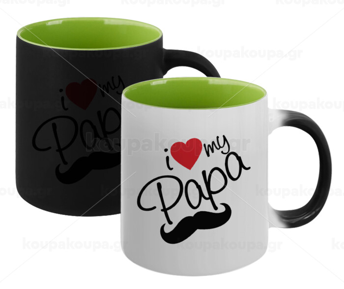 I Love my papa, Κούπα Μαγική εσωτερικό πράσινο, κεραμική 330ml που αλλάζει χρώμα με το ζεστό ρόφημα