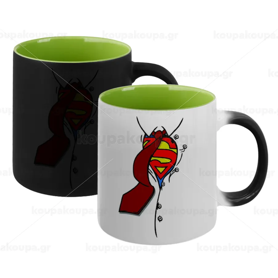 SuperDad, Κούπα Μαγική εσωτερικό πράσινο, κεραμική 330ml που αλλάζει χρώμα με το ζεστό ρόφημα