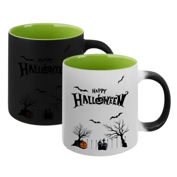 Happy Halloween cemetery, Κούπα Μαγική εσωτερικό πράσινο, κεραμική 330ml που αλλάζει χρώμα με το ζεστό ρόφημα