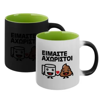 Είμαστε αχώριστοι, Κούπα Μαγική εσωτερικό πράσινο, κεραμική 330ml που αλλάζει χρώμα με το ζεστό ρόφημα
