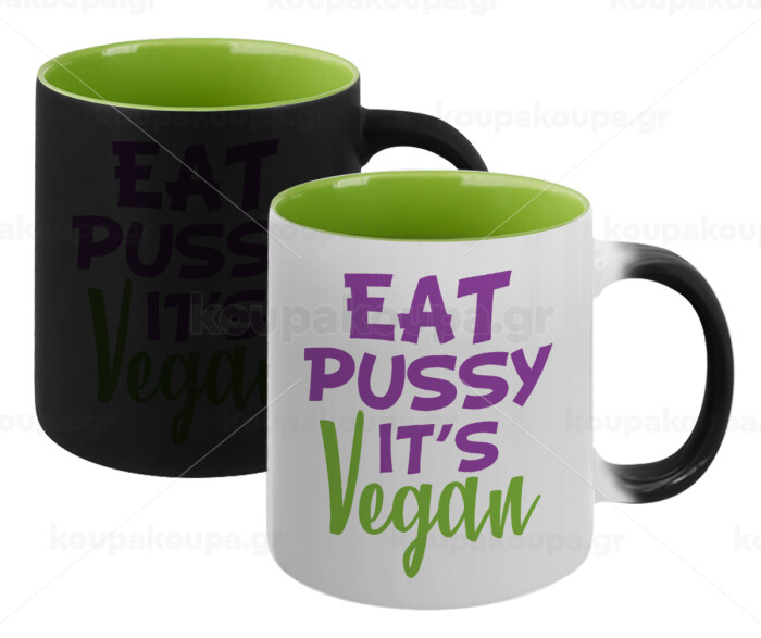 EAT pussy it's vegan, Κούπα Μαγική εσωτερικό πράσινο, κεραμική 330ml που αλλάζει χρώμα με το ζεστό ρόφημα