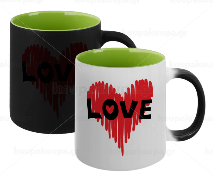 I Love You red heart, Κούπα Μαγική εσωτερικό πράσινο, κεραμική 330ml που αλλάζει χρώμα με το ζεστό ρόφημα