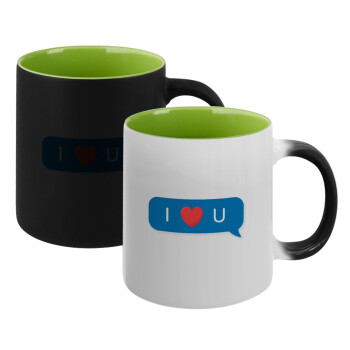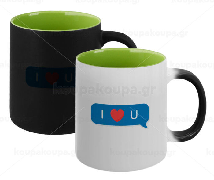 I Love You text message, Κούπα Μαγική εσωτερικό πράσινο, κεραμική 330ml που αλλάζει χρώμα με το ζεστό ρόφημα