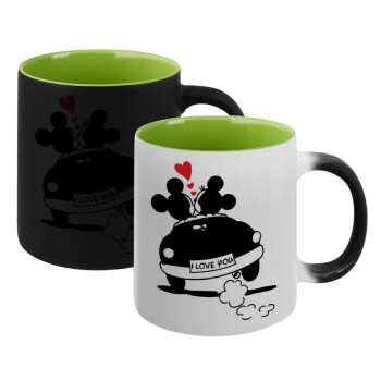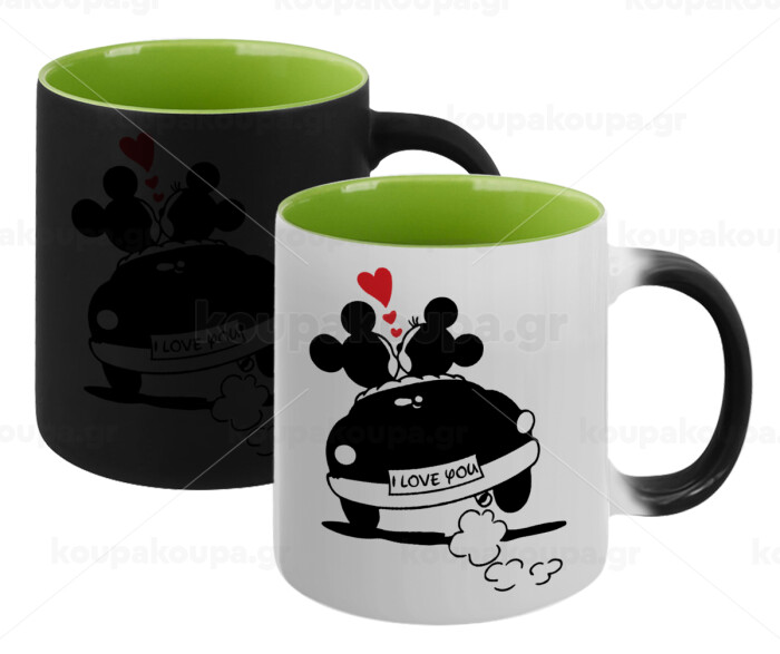 Love Car, Κούπα Μαγική εσωτερικό πράσινο, κεραμική 330ml που αλλάζει χρώμα με το ζεστό ρόφημα