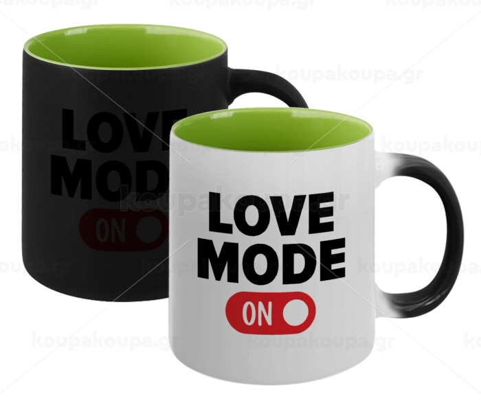 LOVE MODE ON, Κούπα Μαγική εσωτερικό πράσινο, κεραμική 330ml που αλλάζει χρώμα με το ζεστό ρόφημα