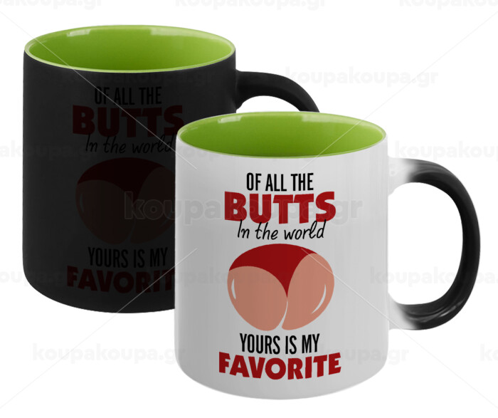 Of all the Butts in the world, your's is my favorite, Κούπα Μαγική εσωτερικό πράσινο, κεραμική 330ml που αλλάζει χρώμα με το ζεστό ρόφημα