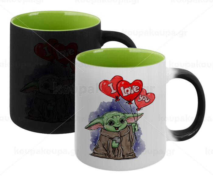 Yoda, i love you, Κούπα Μαγική εσωτερικό πράσινο, κεραμική 330ml που αλλάζει χρώμα με το ζεστό ρόφημα