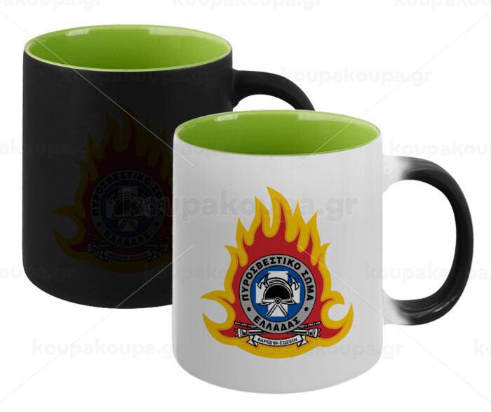Πυροσβεστικό σώμα Ελλάδος σκούρο, Κούπα Μαγική εσωτερικό πράσινο, κεραμική 330ml που αλλάζει χρώμα με το ζεστό ρόφημα