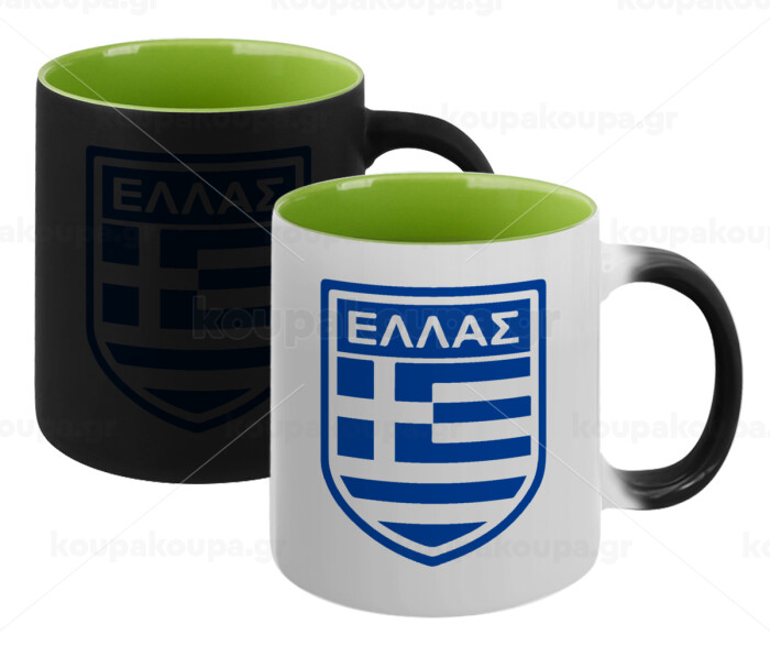 Ελλάς, Κούπα Μαγική εσωτερικό πράσινο, κεραμική 330ml που αλλάζει χρώμα με το ζεστό ρόφημα