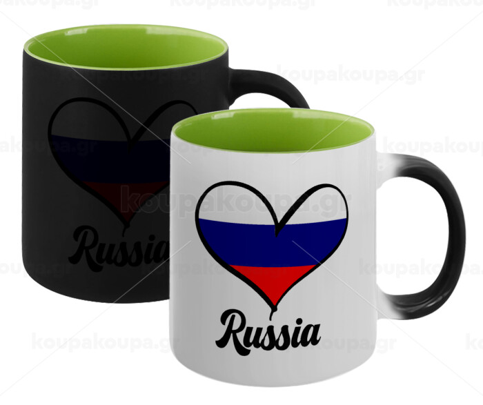 Russia flag, Κούπα Μαγική εσωτερικό πράσινο, κεραμική 330ml που αλλάζει χρώμα με το ζεστό ρόφημα