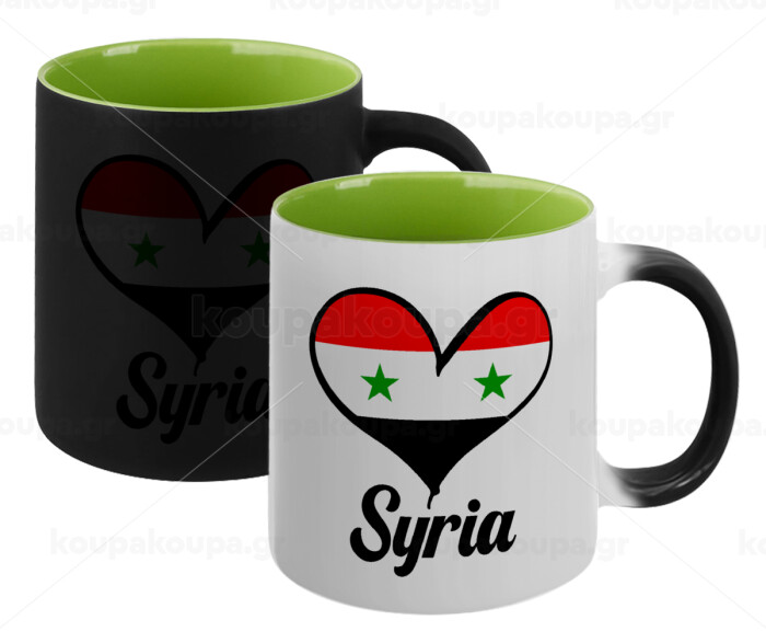 Syria flag, Κούπα Μαγική εσωτερικό πράσινο, κεραμική 330ml που αλλάζει χρώμα με το ζεστό ρόφημα