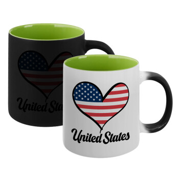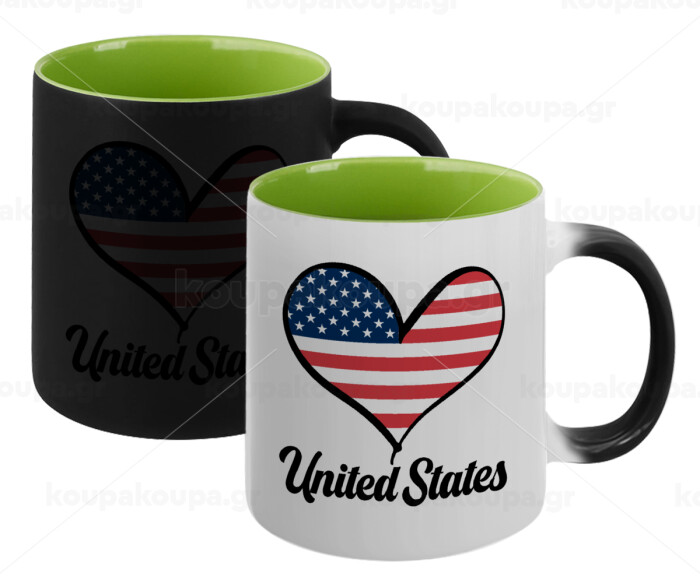 USA flag, Κούπα Μαγική εσωτερικό πράσινο, κεραμική 330ml που αλλάζει χρώμα με το ζεστό ρόφημα