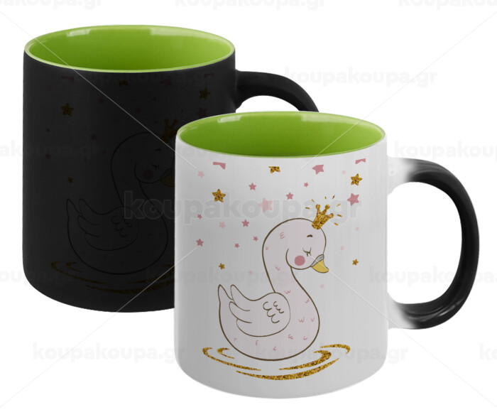 Κύκνος με στέμα, Κούπα Μαγική εσωτερικό πράσινο, κεραμική 330ml που αλλάζει χρώμα με το ζεστό ρόφημα