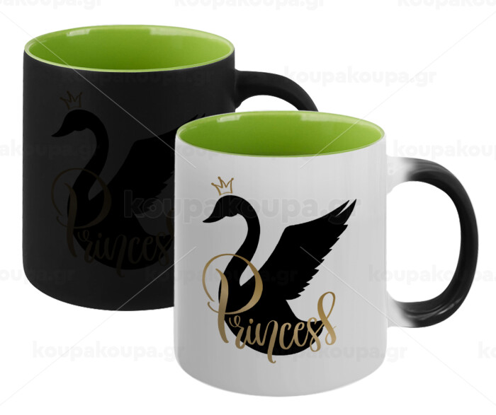 Swan Princess, Κούπα Μαγική εσωτερικό πράσινο, κεραμική 330ml που αλλάζει χρώμα με το ζεστό ρόφημα