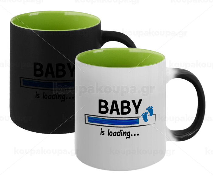 Baby is Loading BOY, Κούπα Μαγική εσωτερικό πράσινο, κεραμική 330ml που αλλάζει χρώμα με το ζεστό ρόφημα