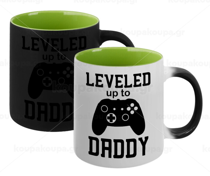 Leveled to Daddy, Κούπα Μαγική εσωτερικό πράσινο, κεραμική 330ml που αλλάζει χρώμα με το ζεστό ρόφημα