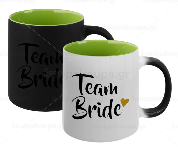 Team Bride, Κούπα Μαγική εσωτερικό πράσινο, κεραμική 330ml που αλλάζει χρώμα με το ζεστό ρόφημα