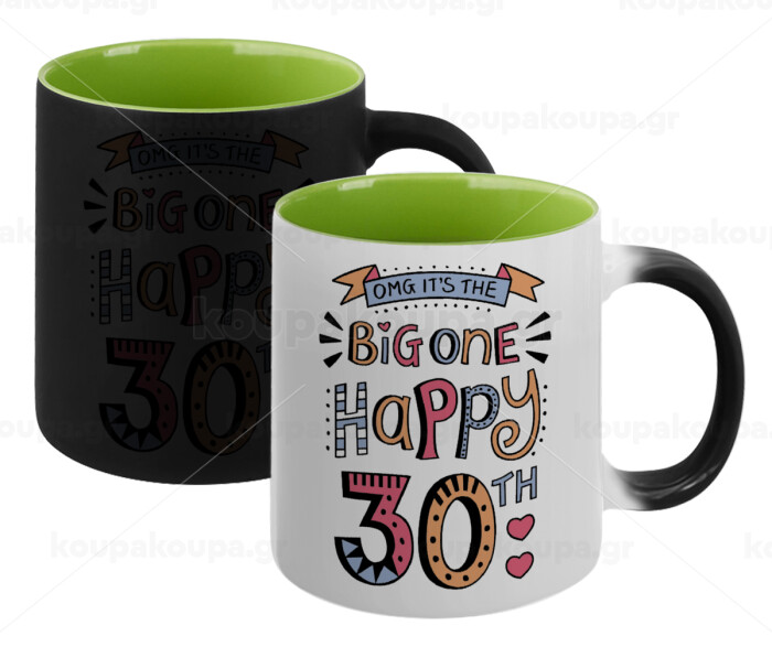 Big one Happy 30th, Κούπα Μαγική εσωτερικό πράσινο, κεραμική 330ml που αλλάζει χρώμα με το ζεστό ρόφημα