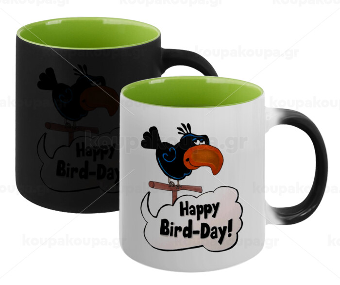 Happy Bird Day, Κούπα Μαγική εσωτερικό πράσινο, κεραμική 330ml που αλλάζει χρώμα με το ζεστό ρόφημα