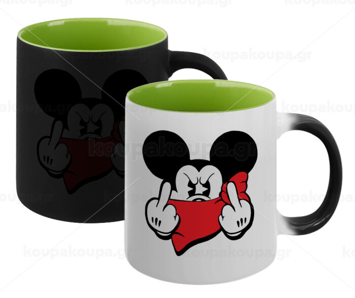 Mickey fuck off, Κούπα Μαγική εσωτερικό πράσινο, κεραμική 330ml που αλλάζει χρώμα με το ζεστό ρόφημα