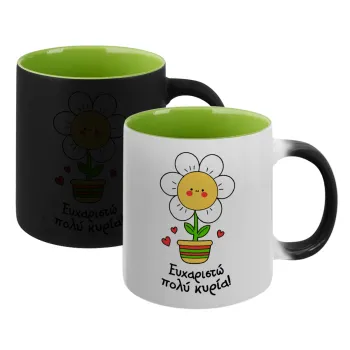 Ευχαριστώ πολύ κυρία!!!, Κούπα Μαγική εσωτερικό πράσινο, κεραμική 330ml που αλλάζει χρώμα με το ζεστό ρόφημα