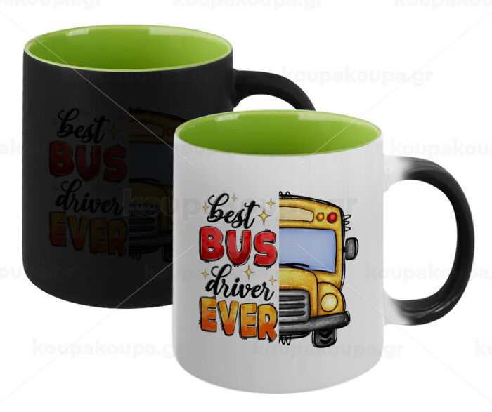 Best bus driver ever!, Κούπα Μαγική εσωτερικό πράσινο, κεραμική 330ml που αλλάζει χρώμα με το ζεστό ρόφημα