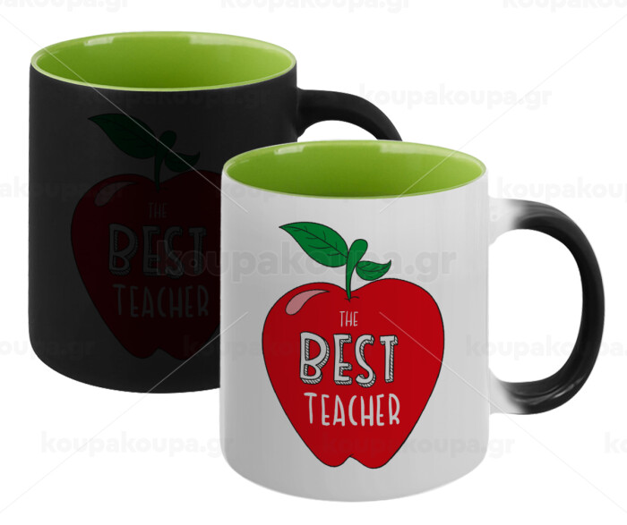 Best teacher, Κούπα Μαγική εσωτερικό πράσινο, κεραμική 330ml που αλλάζει χρώμα με το ζεστό ρόφημα