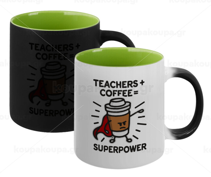 Teacher Coffee Super Power, Κούπα Μαγική εσωτερικό πράσινο, κεραμική 330ml που αλλάζει χρώμα με το ζεστό ρόφημα