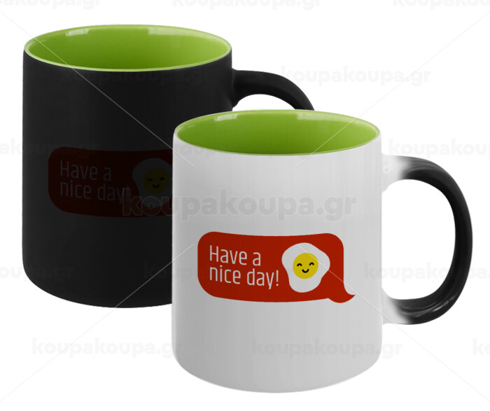 Have a nice day Emoji, Κούπα Μαγική εσωτερικό πράσινο, κεραμική 330ml που αλλάζει χρώμα με το ζεστό ρόφημα