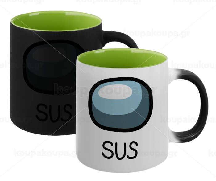 Among US SUS!!!, Κούπα Μαγική εσωτερικό πράσινο, κεραμική 330ml που αλλάζει χρώμα με το ζεστό ρόφημα