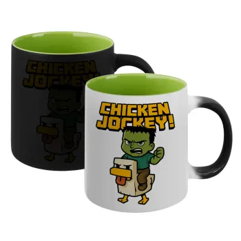 Chicken Jockey, Κούπα Μαγική εσωτερικό πράσινο, κεραμική 330ml που αλλάζει χρώμα με το ζεστό ρόφημα