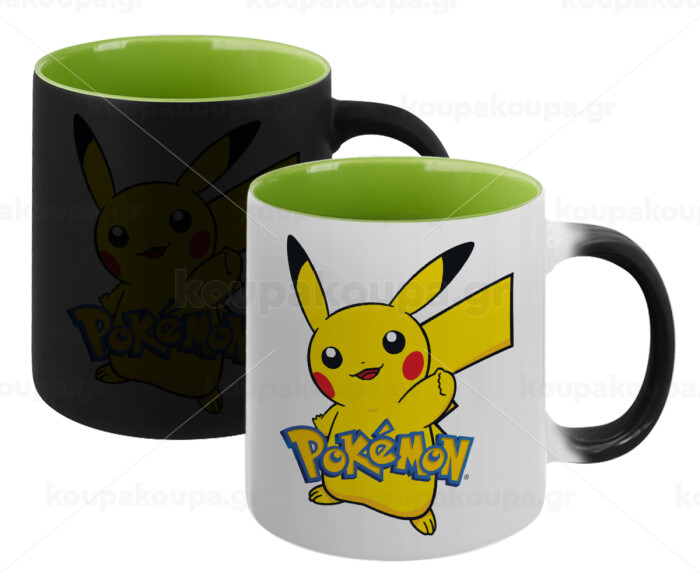 Pokemon pikachu, Κούπα Μαγική εσωτερικό πράσινο, κεραμική 330ml που αλλάζει χρώμα με το ζεστό ρόφημα