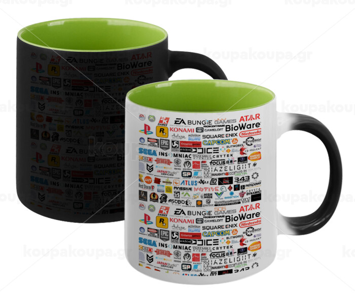 Video Game Studio Logos, Κούπα Μαγική εσωτερικό πράσινο, κεραμική 330ml που αλλάζει χρώμα με το ζεστό ρόφημα