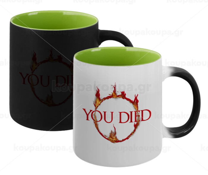 You Died | Dark Souls, Κούπα Μαγική εσωτερικό πράσινο, κεραμική 330ml που αλλάζει χρώμα με το ζεστό ρόφημα
