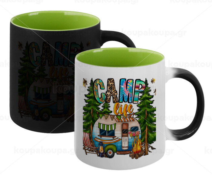 Camp Life, Κούπα Μαγική εσωτερικό πράσινο, κεραμική 330ml που αλλάζει χρώμα με το ζεστό ρόφημα