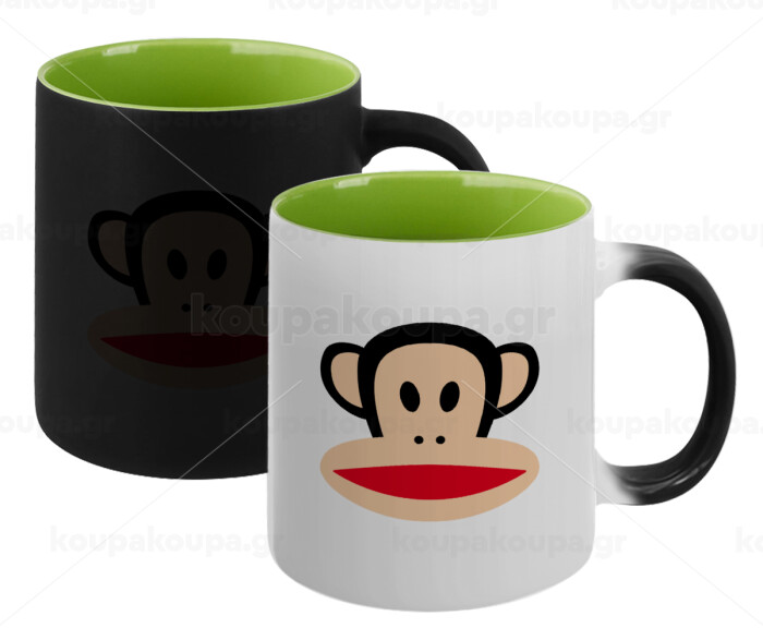 Monkey, Κούπα Μαγική εσωτερικό πράσινο, κεραμική 330ml που αλλάζει χρώμα με το ζεστό ρόφημα