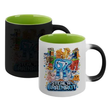 Steal a Brainrot Six Seven, Κούπα Μαγική εσωτερικό πράσινο, κεραμική 330ml που αλλάζει χρώμα με το ζεστό ρόφημα