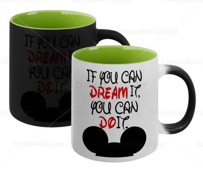 If you can dream it, you can do it, Κούπα Μαγική εσωτερικό πράσινο, κεραμική 330ml που αλλάζει χρώμα με το ζεστό ρόφημα