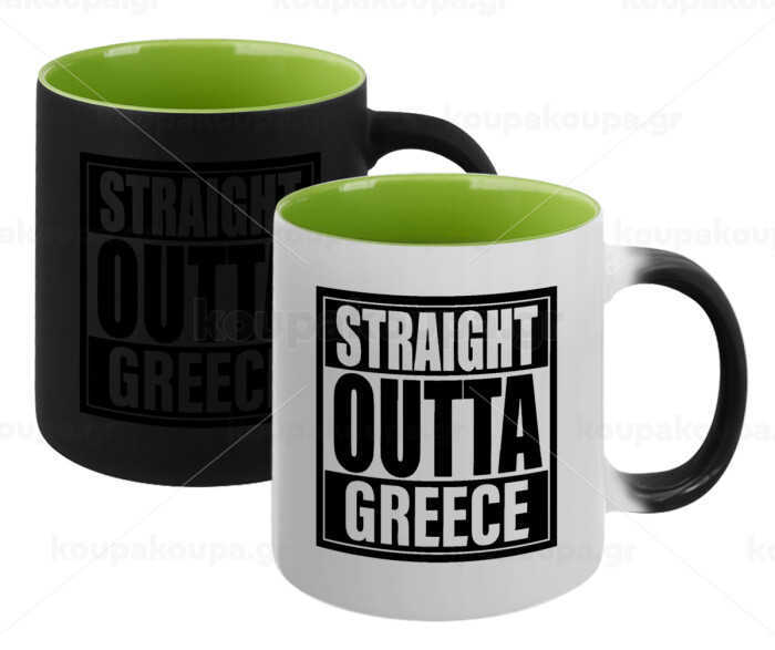 Straight Outta greece, Κούπα Μαγική εσωτερικό πράσινο, κεραμική 330ml που αλλάζει χρώμα με το ζεστό ρόφημα