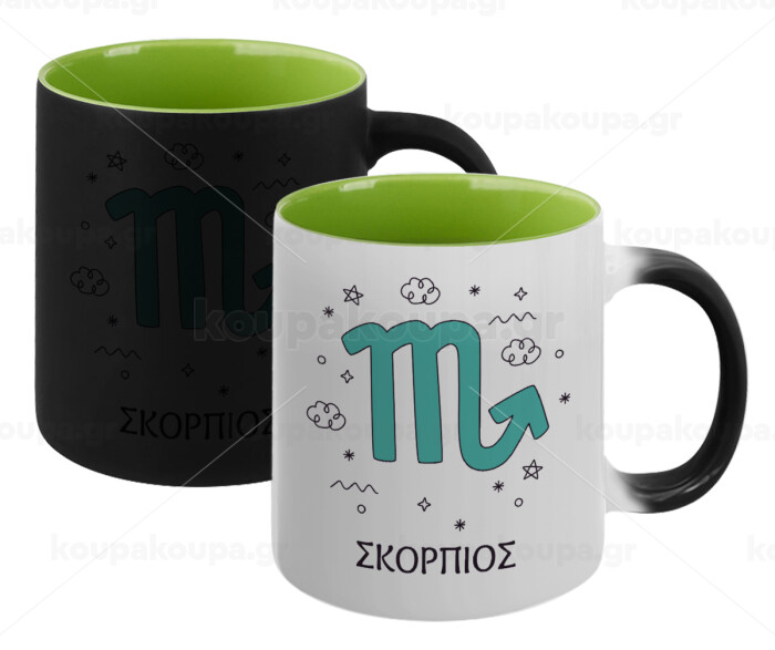 Ζώδια Σκορπιός, Κούπα Μαγική εσωτερικό πράσινο, κεραμική 330ml που αλλάζει χρώμα με το ζεστό ρόφημα