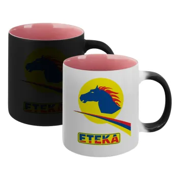 Πρατήριο καυσίμων ETEKA, Κούπα Μαγική εσωτερικό ΡΟΖ, κεραμική 330ml που αλλάζει χρώμα με το ζεστό ρόφημα