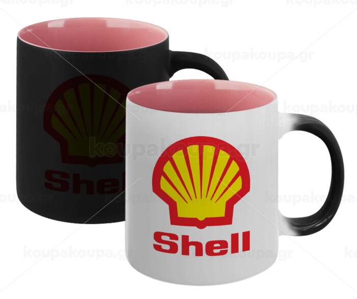 Πρατήριο καυσίμων SHELL, Κούπα Μαγική εσωτερικό ΡΟΖ, κεραμική 330ml που αλλάζει χρώμα με το ζεστό ρόφημα
