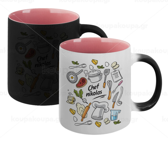 Chef με όνομα, Κούπα Μαγική εσωτερικό ΡΟΖ, κεραμική 330ml που αλλάζει χρώμα με το ζεστό ρόφημα