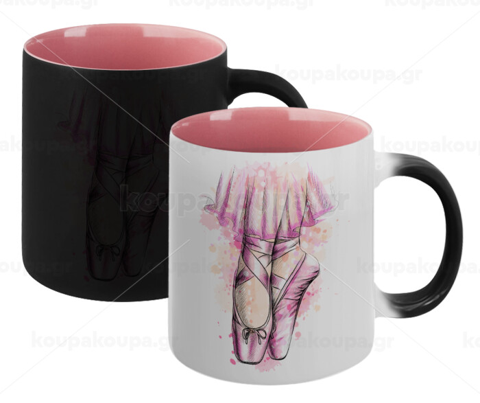 Ballerina shoes, Κούπα Μαγική εσωτερικό ΡΟΖ, κεραμική 330ml που αλλάζει χρώμα με το ζεστό ρόφημα